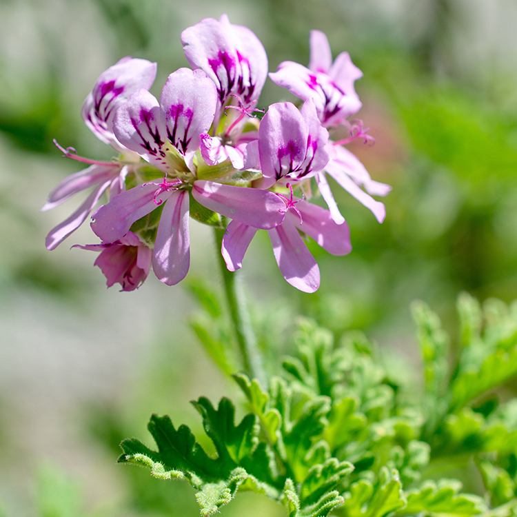 原產於南非的天竺葵是一種灌木,具有強烈甜美香氣,讓人聯想到玫瑰跟檸檬草。世紀以來,這種植物因其獨有的香味而被栽培,粉紅色的小花聚集在花叢中,也因其觀賞值價而受到賞識。在治療方面,天竺葵還以其多種特性而聞名,尤其是殺菌和再生。