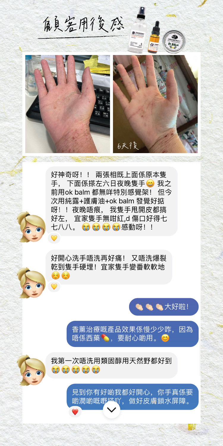 精油產品沒有安全性問題,但仍建議皮膚敏感人士使用前先進行局部敏感測試,而服藥/長期病患人士使用前請向醫生查詢專業意見。